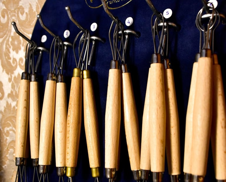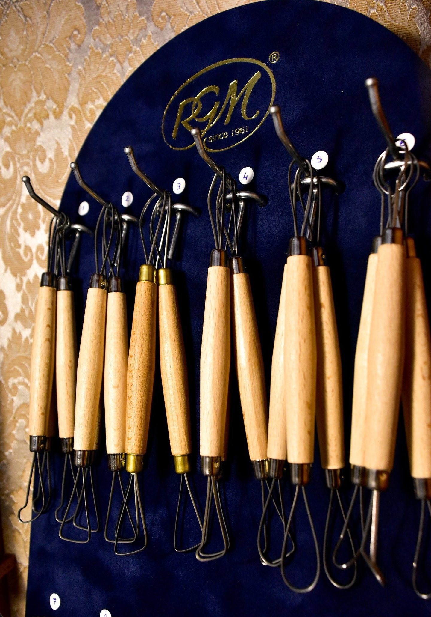 Large choice of clays from the Italian manufacturer SILA suitable for different cooking methods, complete line of clay processing tools made by the Italian company R.G.M.