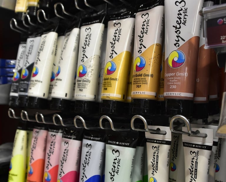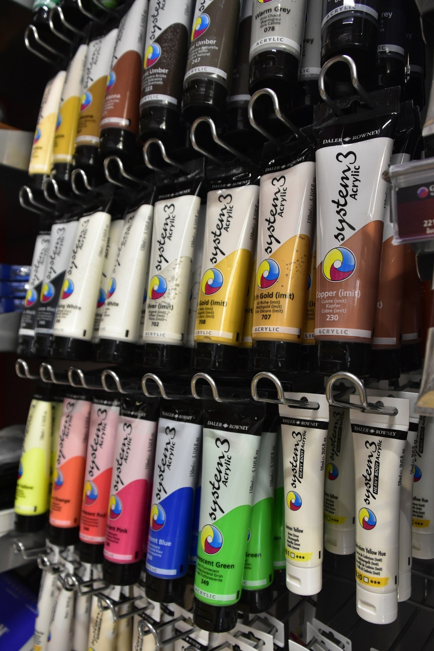 System3 professional line by Daler-Rowney, which also includes the heavy body, used by many modern and contemporary international artists for its ease of use and application on almost any surface, including walls and fabrics, also an ideal choice for street art.